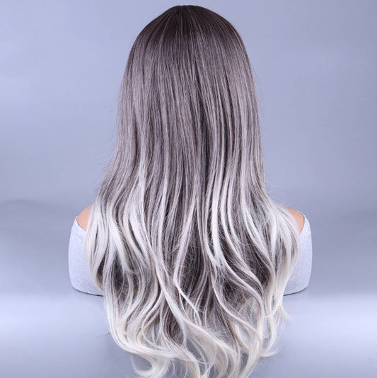 Wig woman long curly hair bayalage new big wave woven fiber full head cover