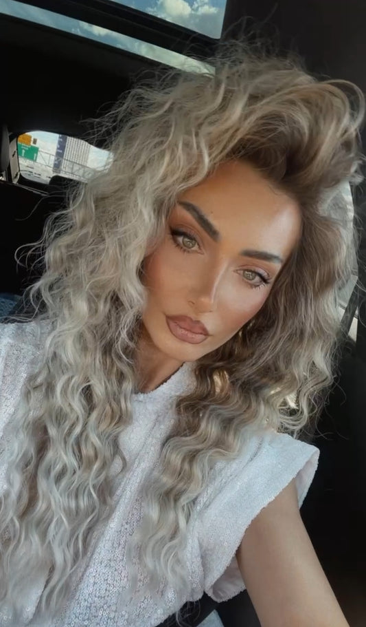 Long Curly Ombre Ash Blonde Synthetic Wig for Women - Heat Resistant Wavy Layered Wig for Natural Daily Wear