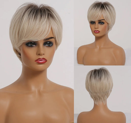 Short Straight Ombre Brown Blonde Bob Wig with Bangs Synthetic Hair Wig for Women Lolita Heat Resistant Fiber